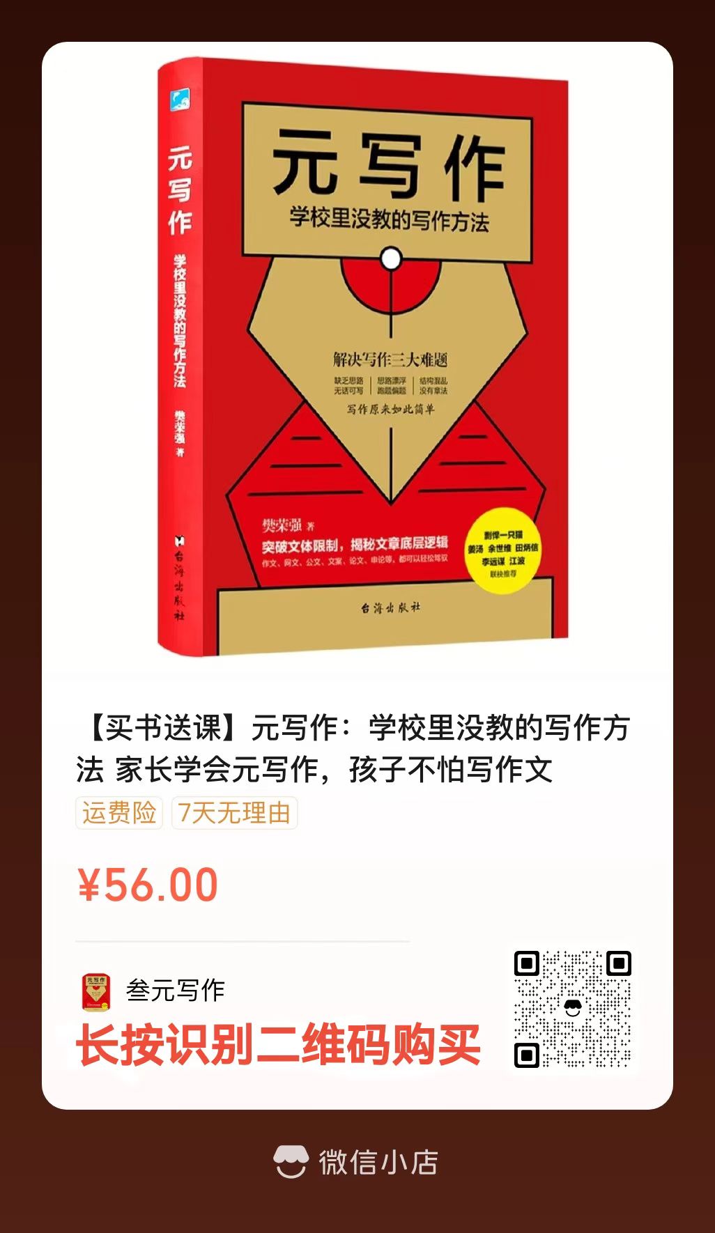 —— 读樊荣强《元写作:学校里没教的写作方法》文/马登“没有话写的时...