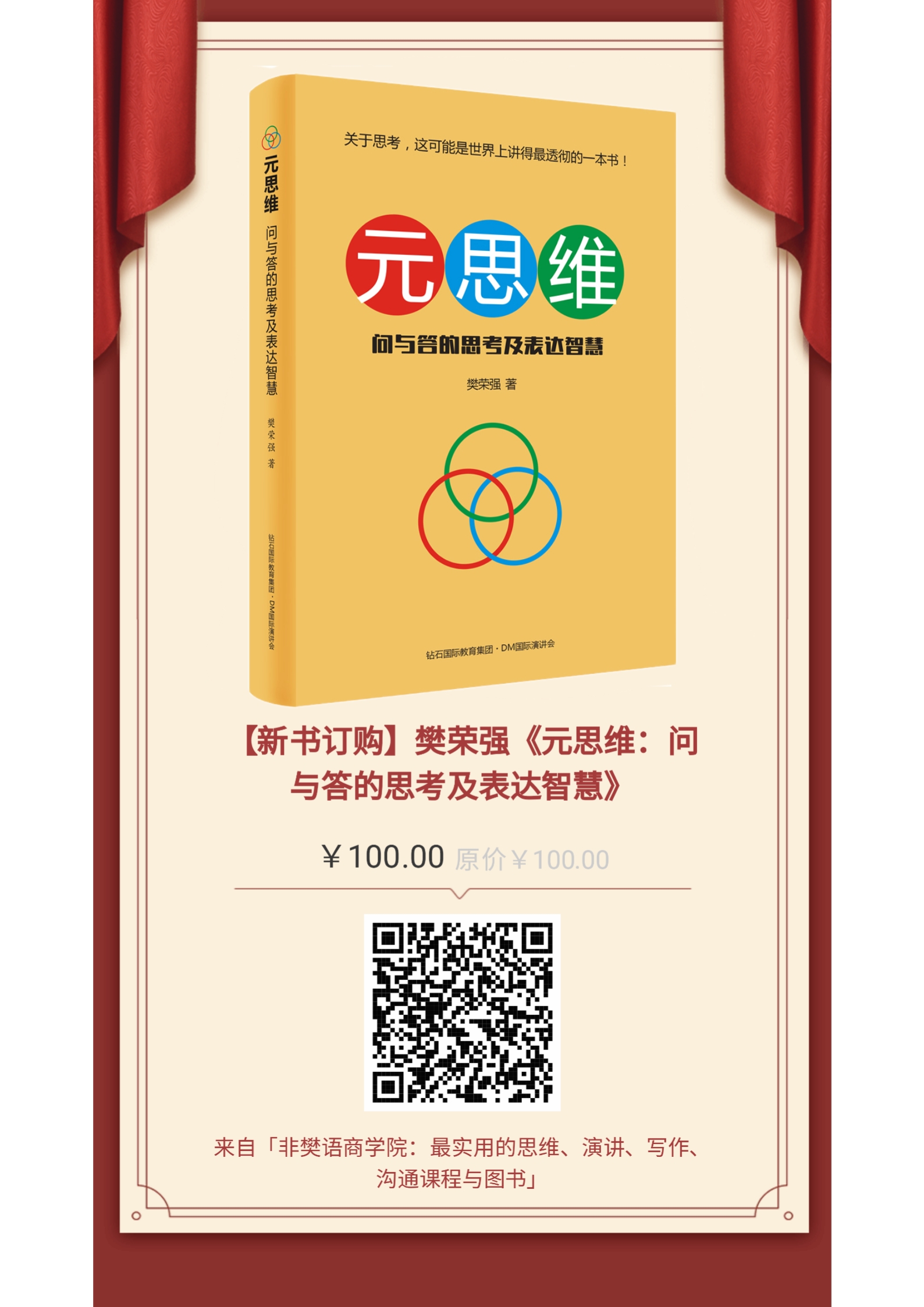 樊荣强从演讲与写作培训实践活动中,开创性地创立“元思维”理论,出版了《神经——元思维:问与答的思考及表达智慧》一书。樊荣强的元思维理论经过十余年的系统研究与完善,在人工智能时代展现出独特的理论价值与实践意义。这一理论以"问与答"为核心,揭示了人类思维的本质规律,为人工智能的自然语言处理提供了重要的理论支撑。DeepSeek作为新一代人工智能大模型,其深度思考的逻辑与元思维理论高度契合,这种契合不仅体现在技术层面,更深刻地反映了人类思维规律与人工智能发展的内在统一性。