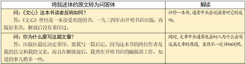 答:这句话的后一半可说错了,事实上并没有谁作出过停印《文心》的决定。解放之初,开明的编辑部问过我父亲(我岳父已经在一九四六年去世了),《文心》如果重印,是否需要作一些修改。当时我父亲很忙,把这件不急之务搁了下来,没有马上答复。后来开明跟青年出版社合并,成立了公私合营的中国青年出版社,就不再提起这本书,直到现在。
